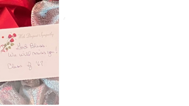 "GOD BLESS. WE WILL MISS YOU! CLASS OF '67"